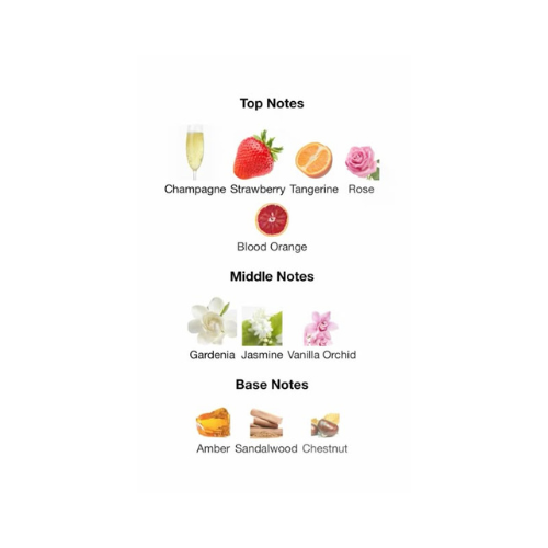 Top Notes: Champagne, Strawberry, Tangerine, Blood Orange, Rose