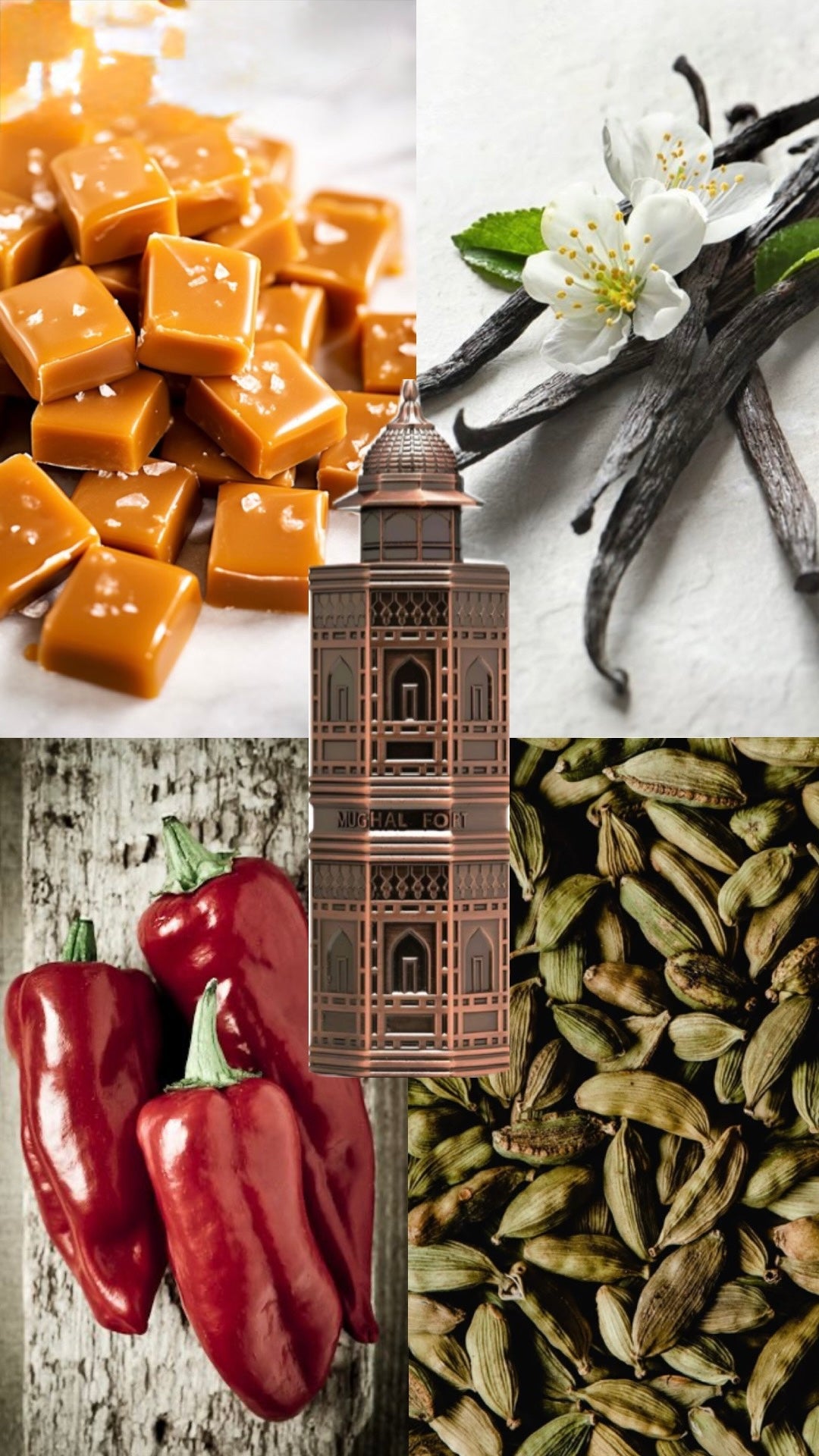 Mughal Fort opens like the regal gates of an ancient palace: spicy cardamom and pimento embark the scene, followed by smooth cedarwood and rich caramel, and it all settles into a luxurious base of vanilla, musk, and amber. Bold, majestic, and elegantly powerful: the scent you wear when you want to leave an unforgettable impression.