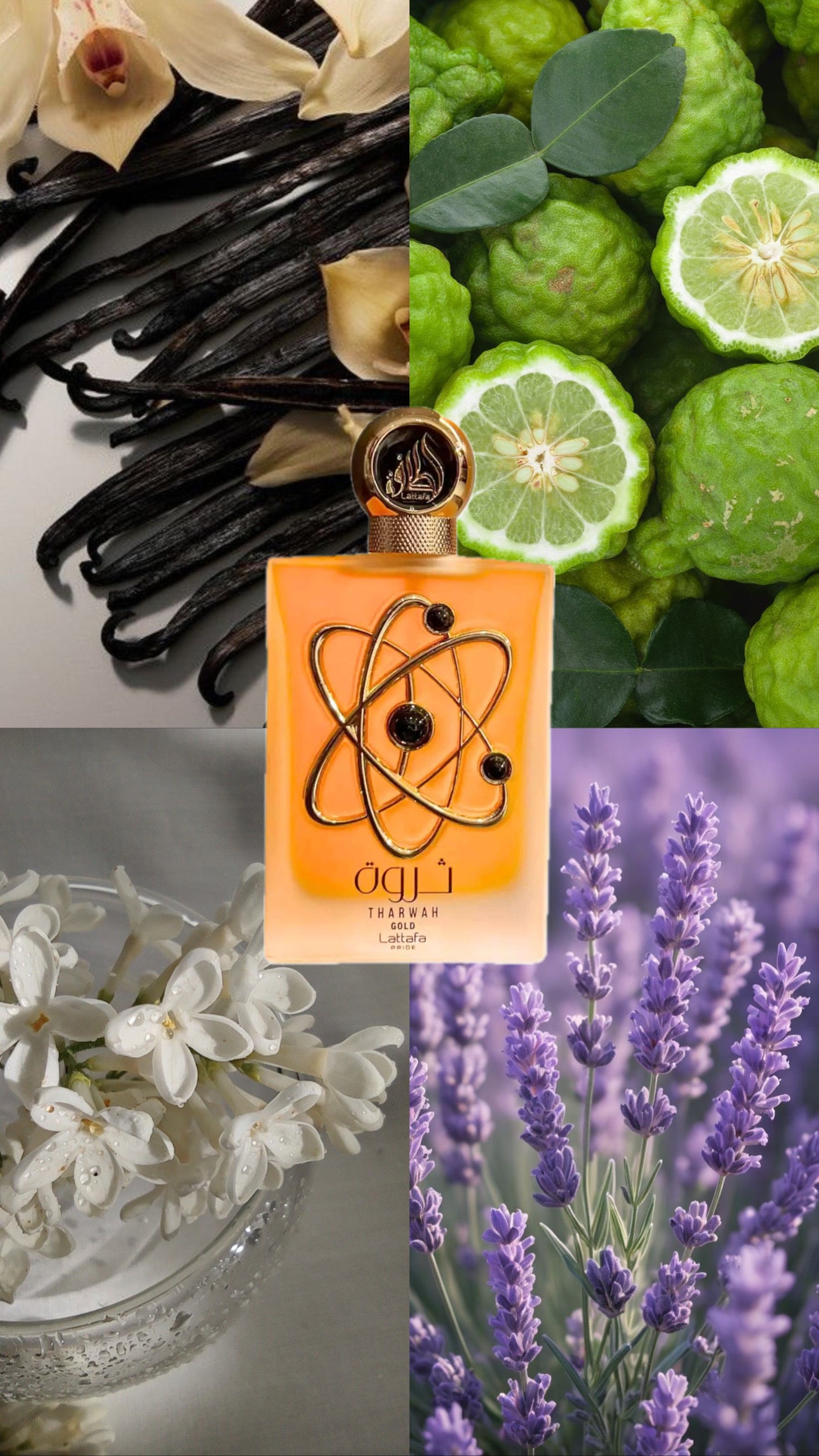 Tharwah Gold feels like golden sunlight on the skin: a luminous blend of lavender and bergamot softly melting into orange blossom and jasmine. It dries down into warm vanilla, amber and vetiver, creating a cozy, elegant and irresistible aura. Radiant, smooth and luxurious.